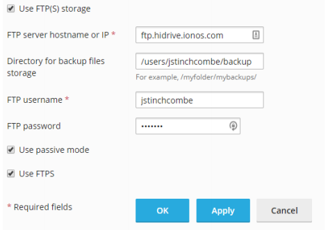 Select what you want to backup and tickeitherboth or FTP(S)and done: