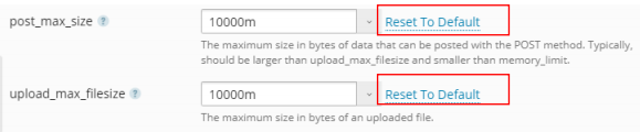 This import is now done, but we need to do one more thing, set the PHP back to the original value so head back to plesk and php settings and select reset to default: